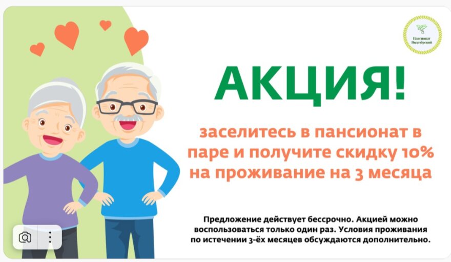 Я остался очень доволен пансионатом. Мои родители получили необходимый уход и внимание, а я — уверенность в том, что они находятся в надёжных руках. Рекомендую этот пансионат для пожилых людей, которые нуждаются в заботе и внимании.